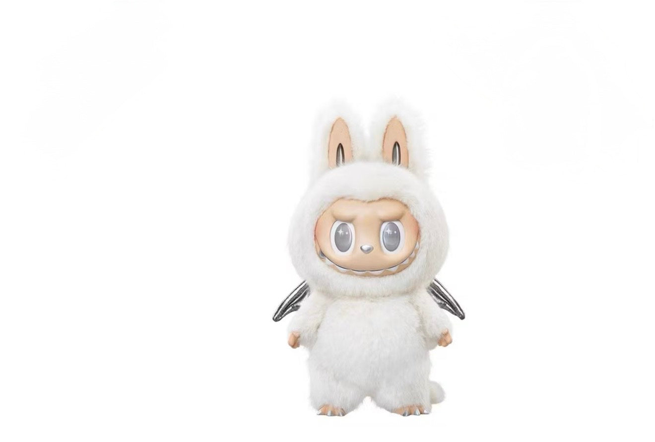The set includes a plush Labubu doll with a vinyl face and an all-white body. In addition, the set comes with a canvas tote bag decorated with Roman columns and other motifs denoting the heavens. Unlike other Labubu dolls, this version takes on an angelic form with sharp teeth, ear accents, and wings all in metallic silver. Inspired by Nordic myths, the character is a pop culture icon and appears as an accessory worn by celebrities, K-pop stars, and internet personalities.